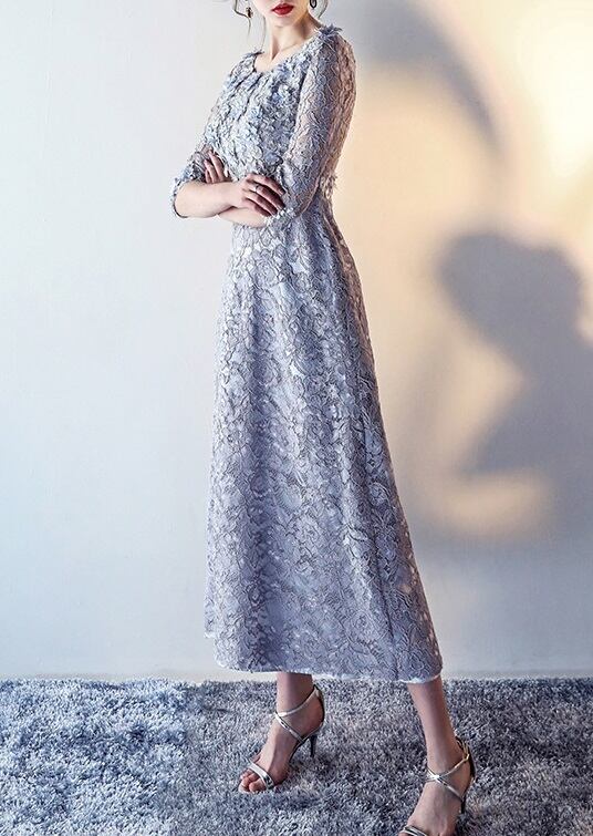ドレス レース ラウンドネック フラワー エレガント パーティー