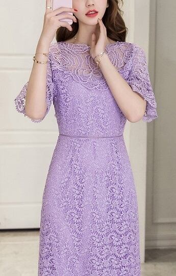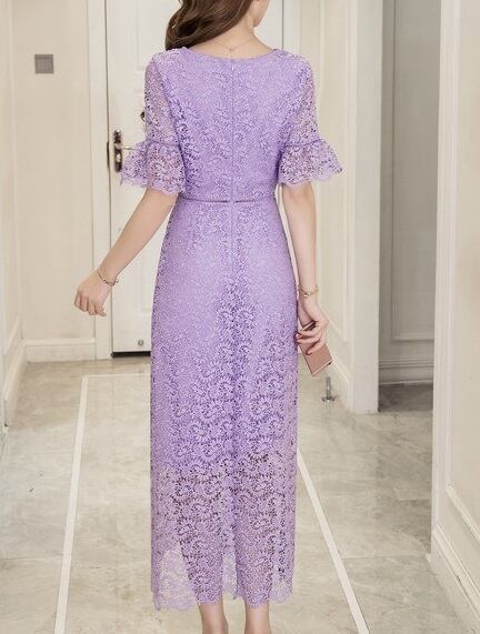 ワンピース 総レース 透かし彫り ロング エレガント パーティー