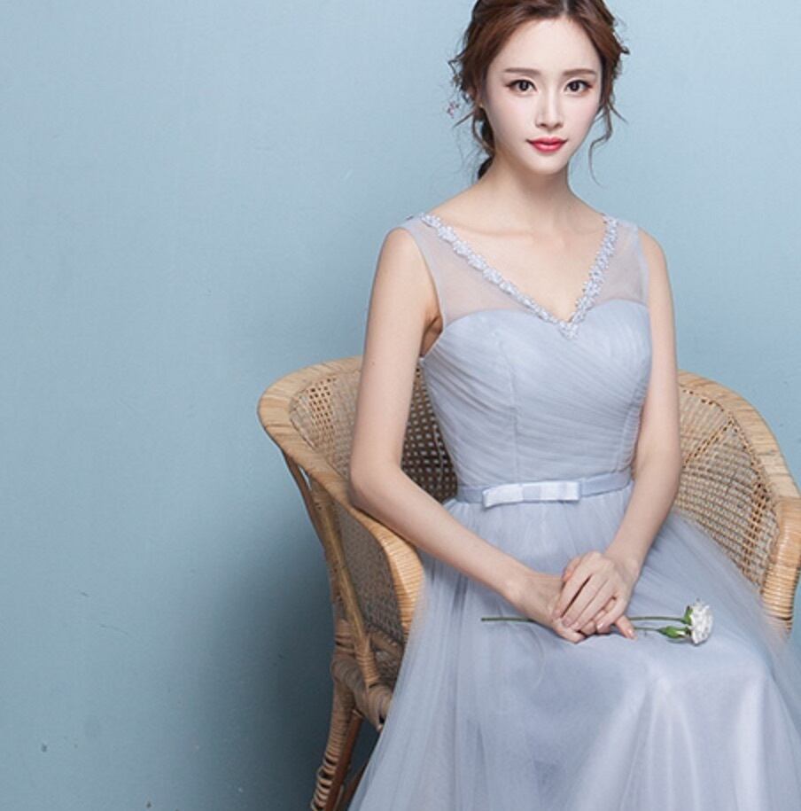 清楚なチュールロングパーティードレス 演奏会衣装発表会 A