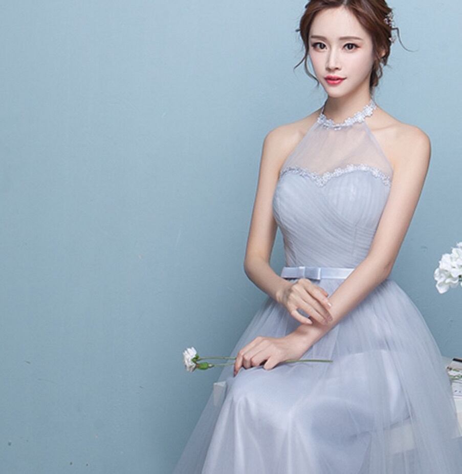 清楚なチュールロングパーティードレス 演奏会衣装発表会 D