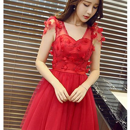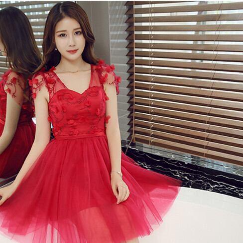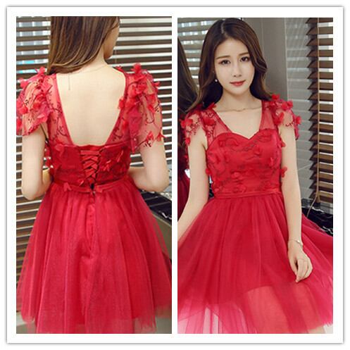 赤透け感がセクシーな ミニパーティードレス 結婚式キャバ衣装 E