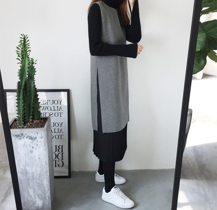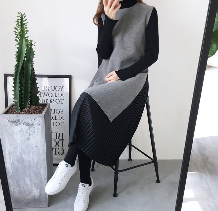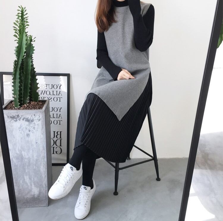 灰色部分 ウール スカート シフォン